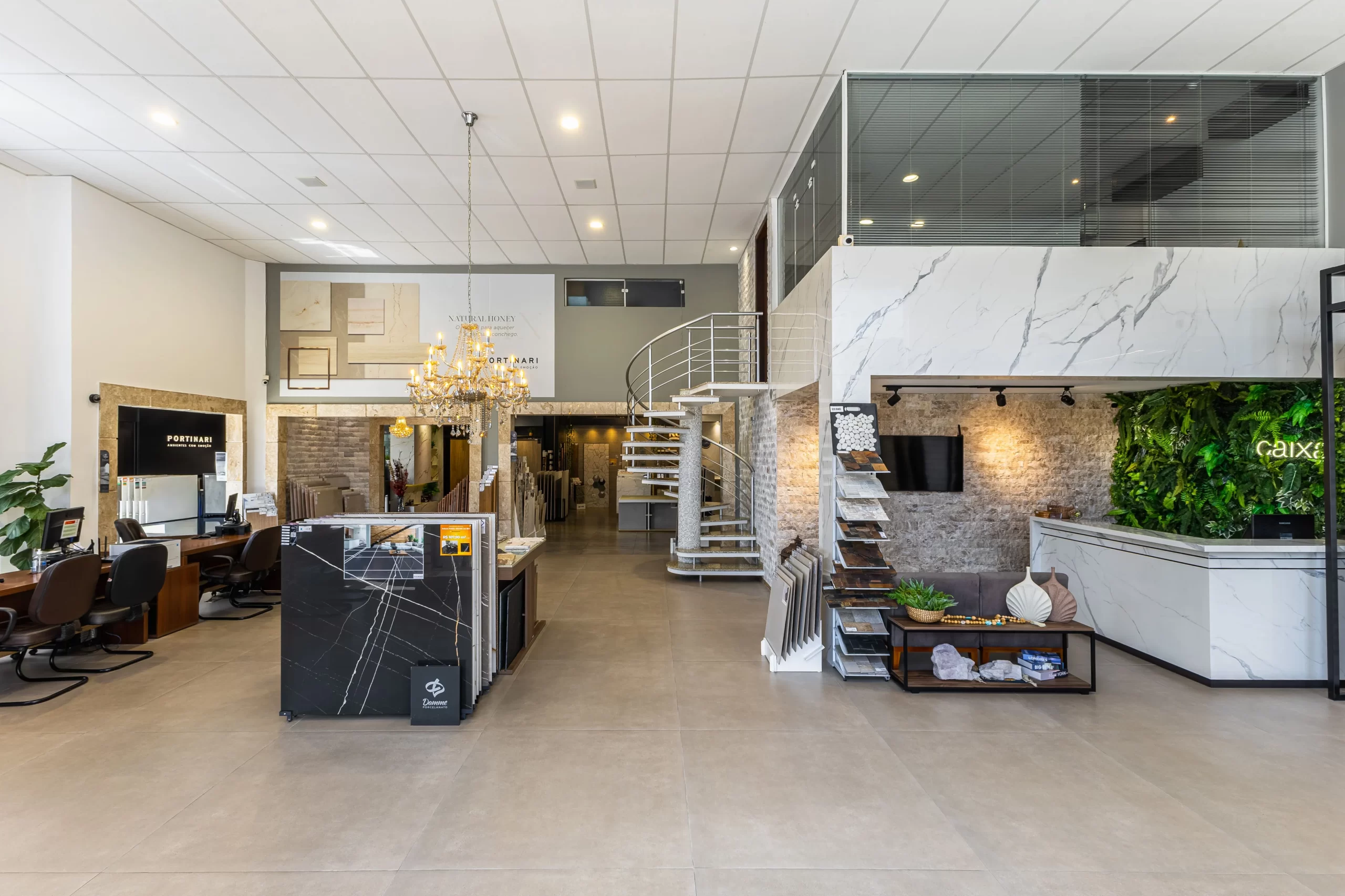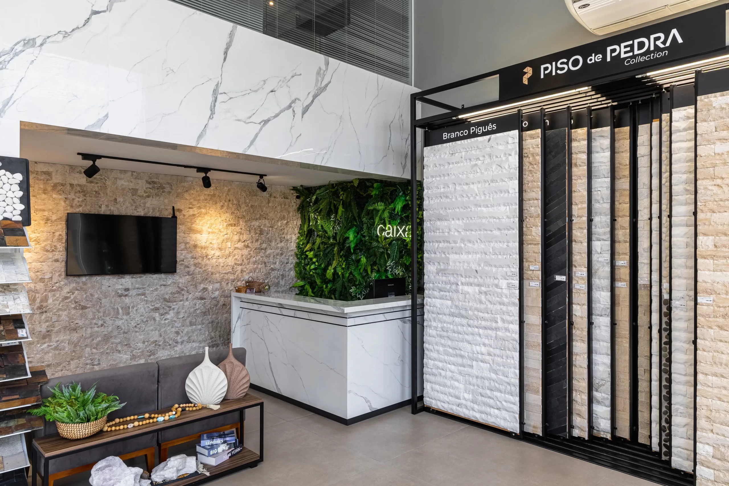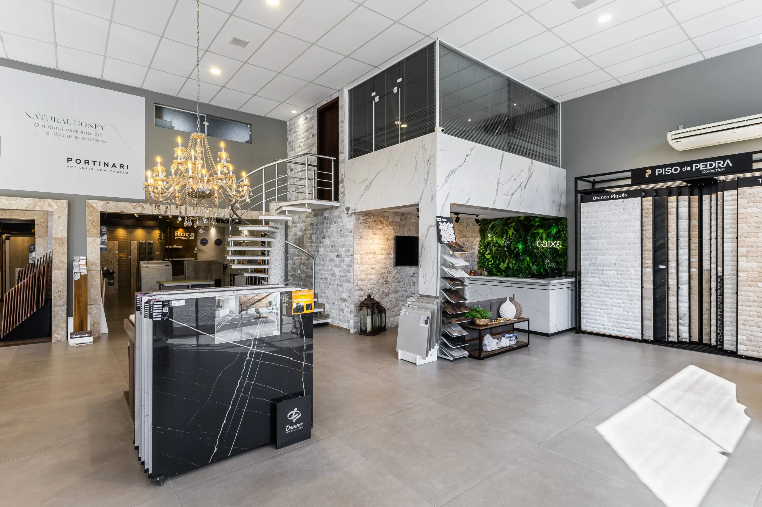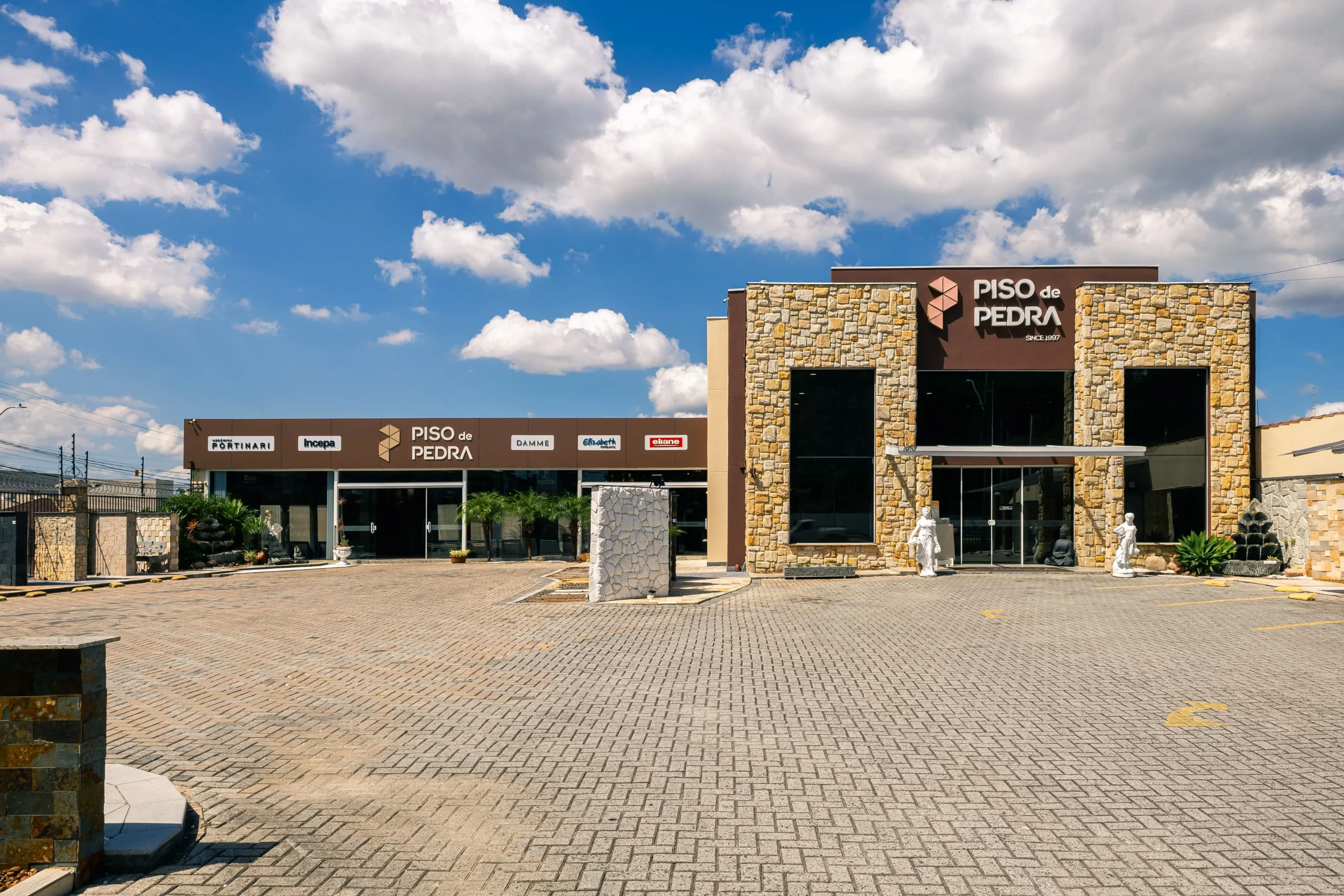 A Piso de Pedra oferece um amplo e sofisticado showroom para facilitar a decisão na hora da compra, onde o cliente poderá ter um contato e uma experiência positiva de todos os nossos produtos, encontrando uma grande variedade de Pedras Decorativas, Porcelanatos das principais marcas como Incepa, Roca, Portinari, Ceusa, Elizabeth, Eliane, Atlas e Damme, além de artigos para paisagismo.
