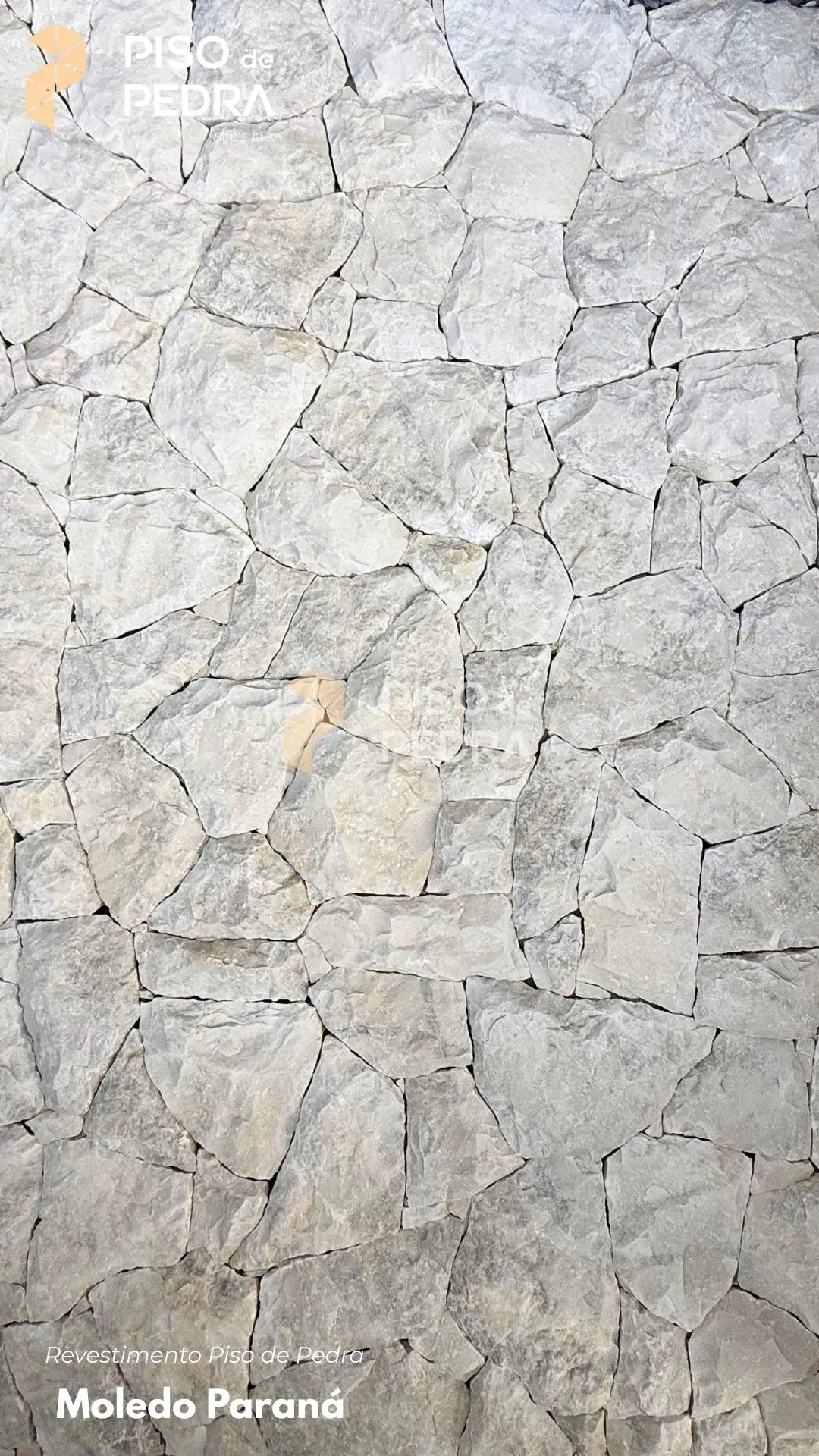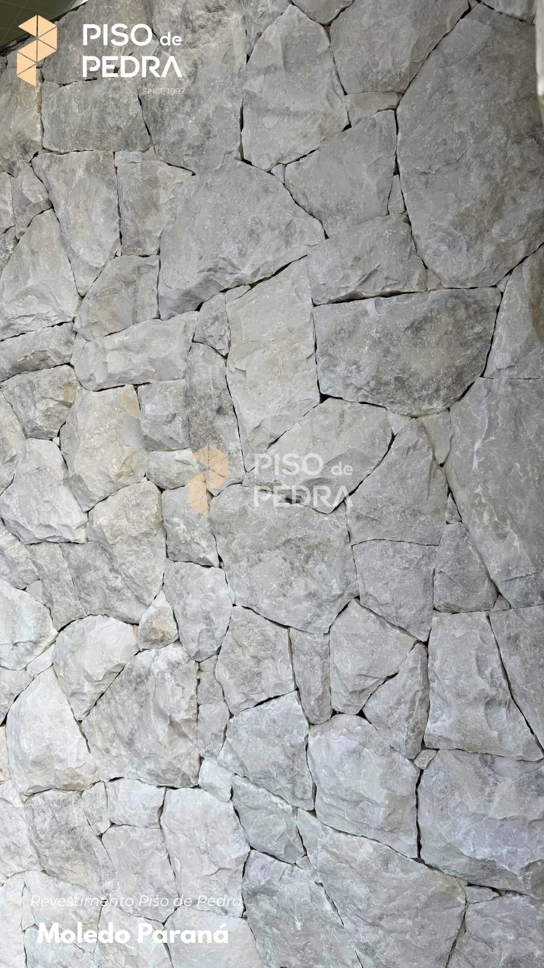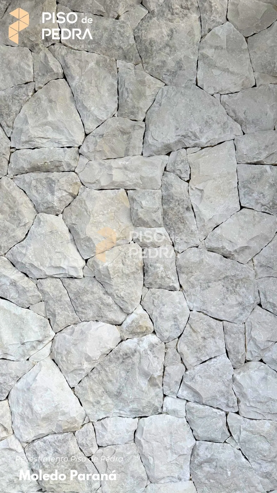 Moledo Paraná Orgânica é um revestimento exclusivo da Piso de Pedra. Pedra orgânica em mármore branco Paraná, com rajados cinza, veios dourados e nuances amareladas, rústica e irregular, ideal para paredes internas e externas.